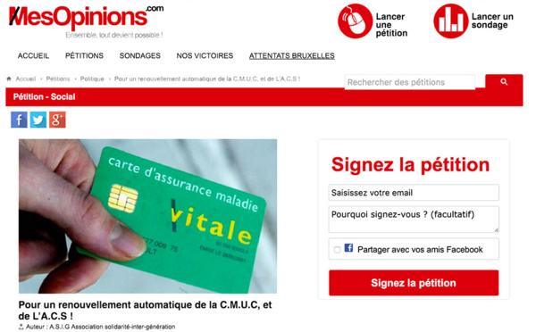 Pétition pour un renouvellement automatique de la C.M.U.C, et de L’A.C.S , l'assuré préviendra la CGSS pour tout changement de situation. Pour mettre fin aux tracasseries administrative avec la CGSS...
