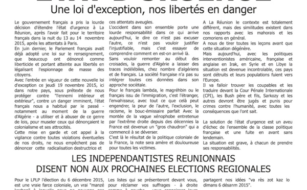 Un numéro de "FANAL" tout en français pour les illettrés du créole… Pour nos amis qui ne possède hélas qu'une seule langue écrite, nous ne pouvons que remercier l'équipe de rédaction du Zournal...