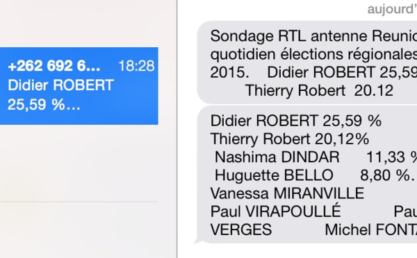 J'ai reçu ce message : Selon un sondage qui ne m'a pas concerné personnellement, Nassimah Dindar et Huguette Bello vont passer de mauvaises fêtes… Mais ce n'est qu'un sondage !