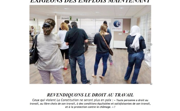 Ceux qui violent La Constitution ne seront plus en paix : « Toute personne a droit au travail, au libre choix de son travail, à des conditions équitables et satisfaisantes de son travail, et à la...