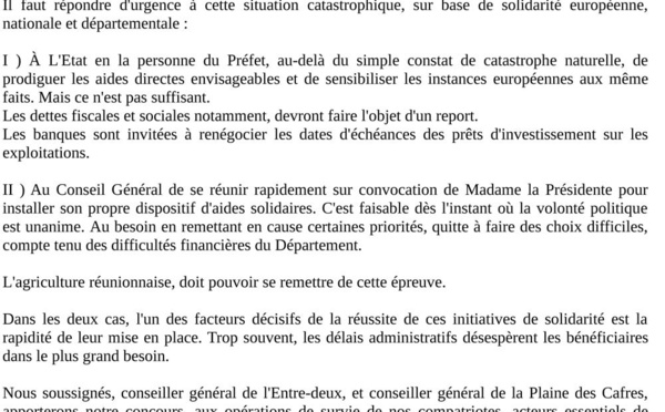 Le Président de la Région Didier ROBERT Interpelle le 1er Ministre pour un soutien aux entreprises réunionnaises et demande l'état de catastrophe naturelle - 1/ que le passage du cyclone BEJISA au...