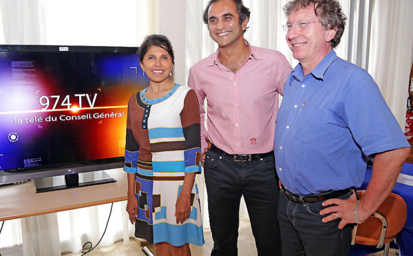 Nassimah Dindar, présidente du Conseil général, accompagnée de Nassir Goulamly, directeur général de ZEOP, a reçu cet après-midi les médias locaux afin de leur présenter 974 TV, la Télé du...