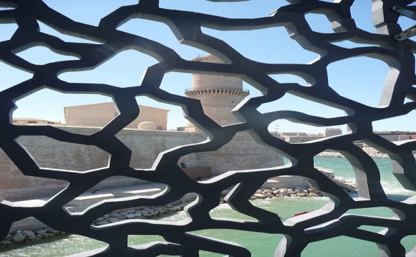 Derrière une résille de béton sombre, la mer si bleue, comme un vitrail, et puis l'éclat flamboyant du soleil, et puis le souffle puissant du vent, du mistral. Bateau posé là, à l'entrée d'un port...