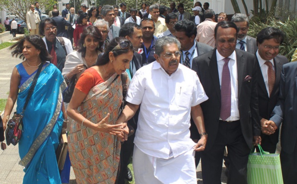 Le ministre indien en charge de la diaspora indienne Outre-mer, Vayalar Ravi (en blanc sur la photo), qui aurait dû effectuer une visite de deux jours à La Réunion, à partir d'aujourd'hui, a...