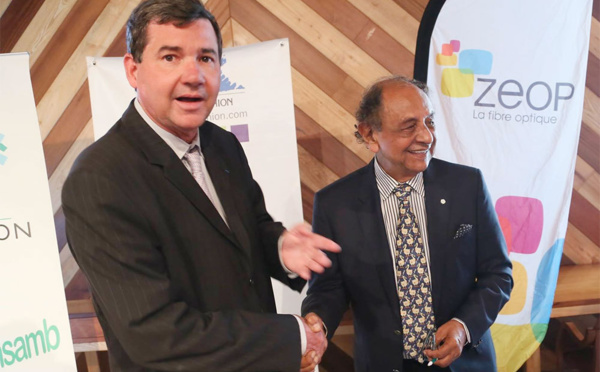 Dans le cadre du plan national « FRANCE Trés Haut Débit »,Vincent Payet, conseiller régional chargé des TIC, Thomas Sini, représentant La Préfecture de La Réunion, et Abdé Ali Goulamaly,...